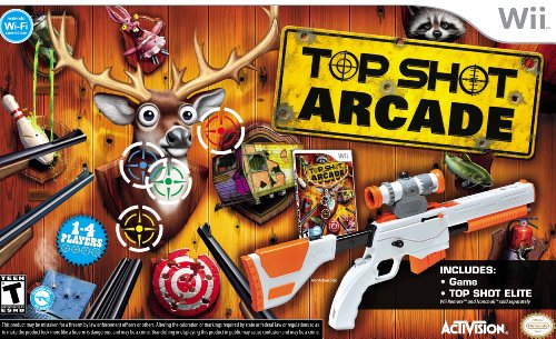 Shootin' fun for everyone! Have a Blast in 4 player head-to-head arcade action! Enjoy non-stop laughs and the wildest shootin' action ever as you compete in 75 arcade style shootin' galleries and 15 over the top bonus games. Featuring 4 person head-to-head arcade style gameplay, this is the ultimate game for a party or family night. You'll also need to get your trigger finger ready as the game comes bundled with the Top Shot Elite peripheral - just load your Wii Remote and Nunchuk and you're ready for countless hours of shootin' action!Top Shot Arcade with Top Shot Elite Gun Peripheral Specifications